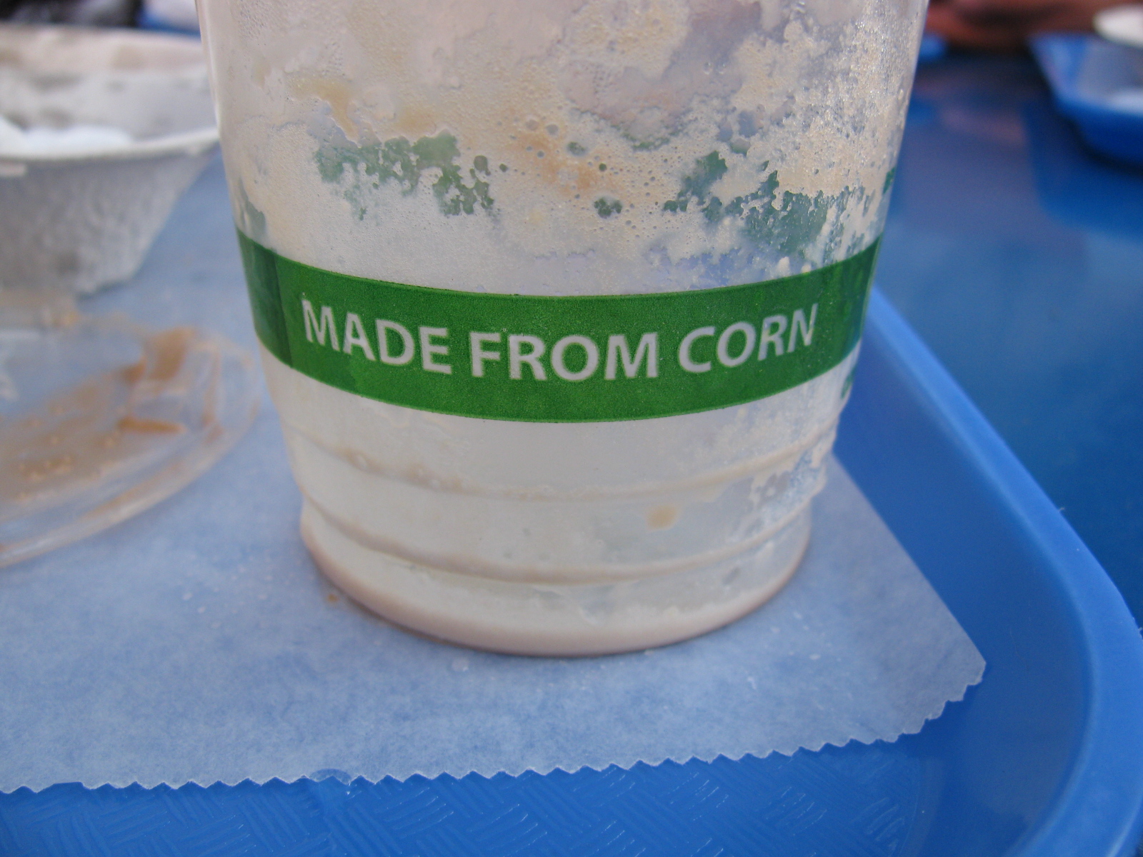 Seattle has a new law that all throwaway restaurant ware, such as plates, forks and cups, must be compostable. Now you see things like this there.