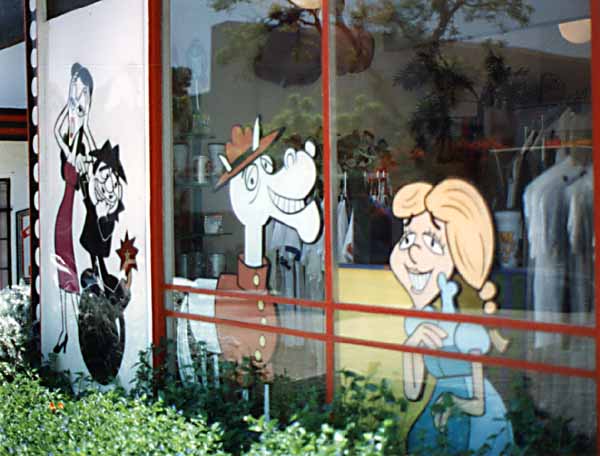 The front of the Emporium, featuring likenesses of Natasha, Boris Badenov, Dudley Do-Right's horse Horse, and Nell Fenwick.