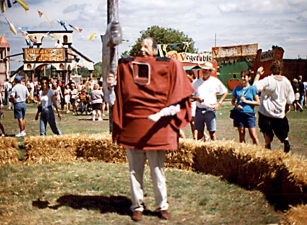 Michael in his harness with a fake Dole head on top.