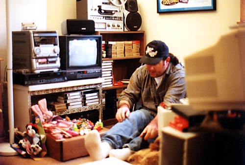 Yakko gets comfy to work on his laptop and help network Vakko's machines.