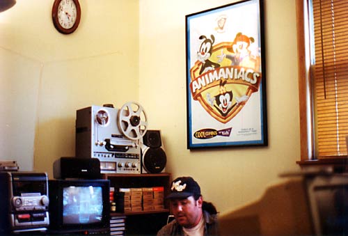 Vakko's TV, tape recorder, and A! poster. Yakko continues to hack.