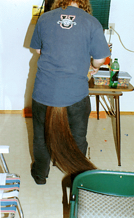 Animated GIF: Vakko swishes his tail in the kitchen.