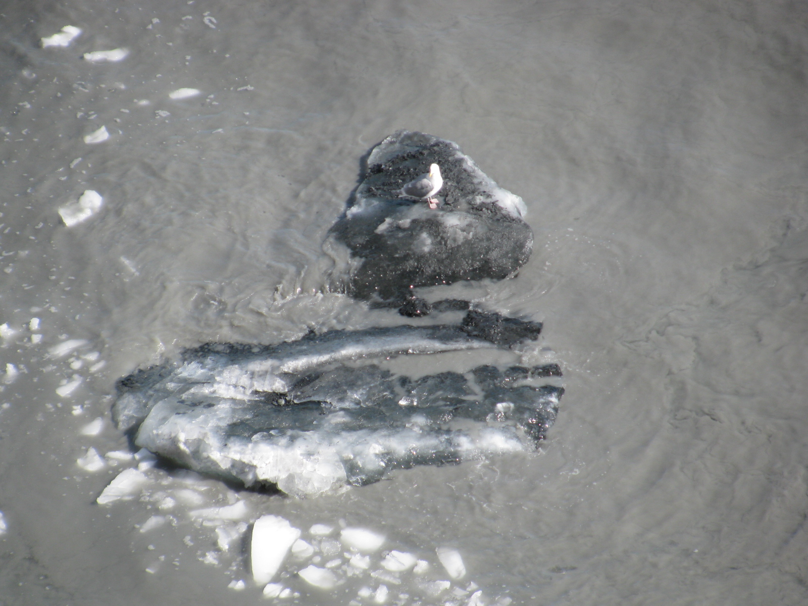 like thunder, falls into the water, breaks up and floats away. If you look closely, just barely to the right of dead center,