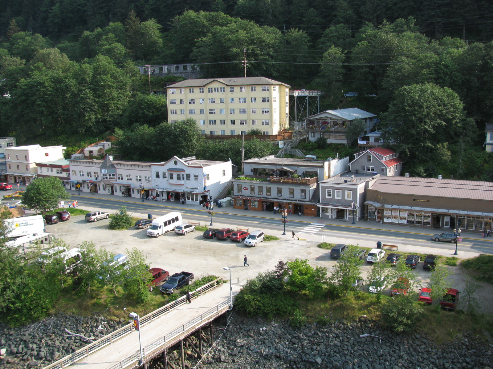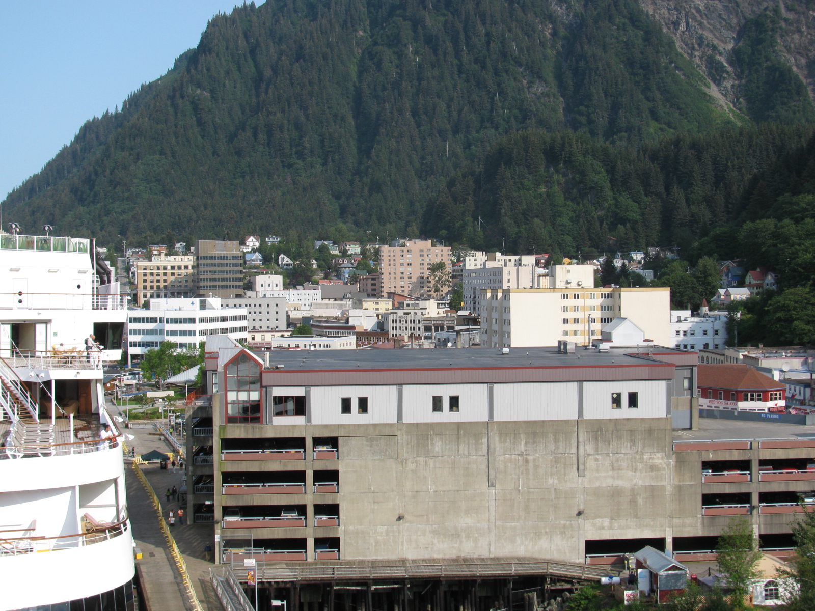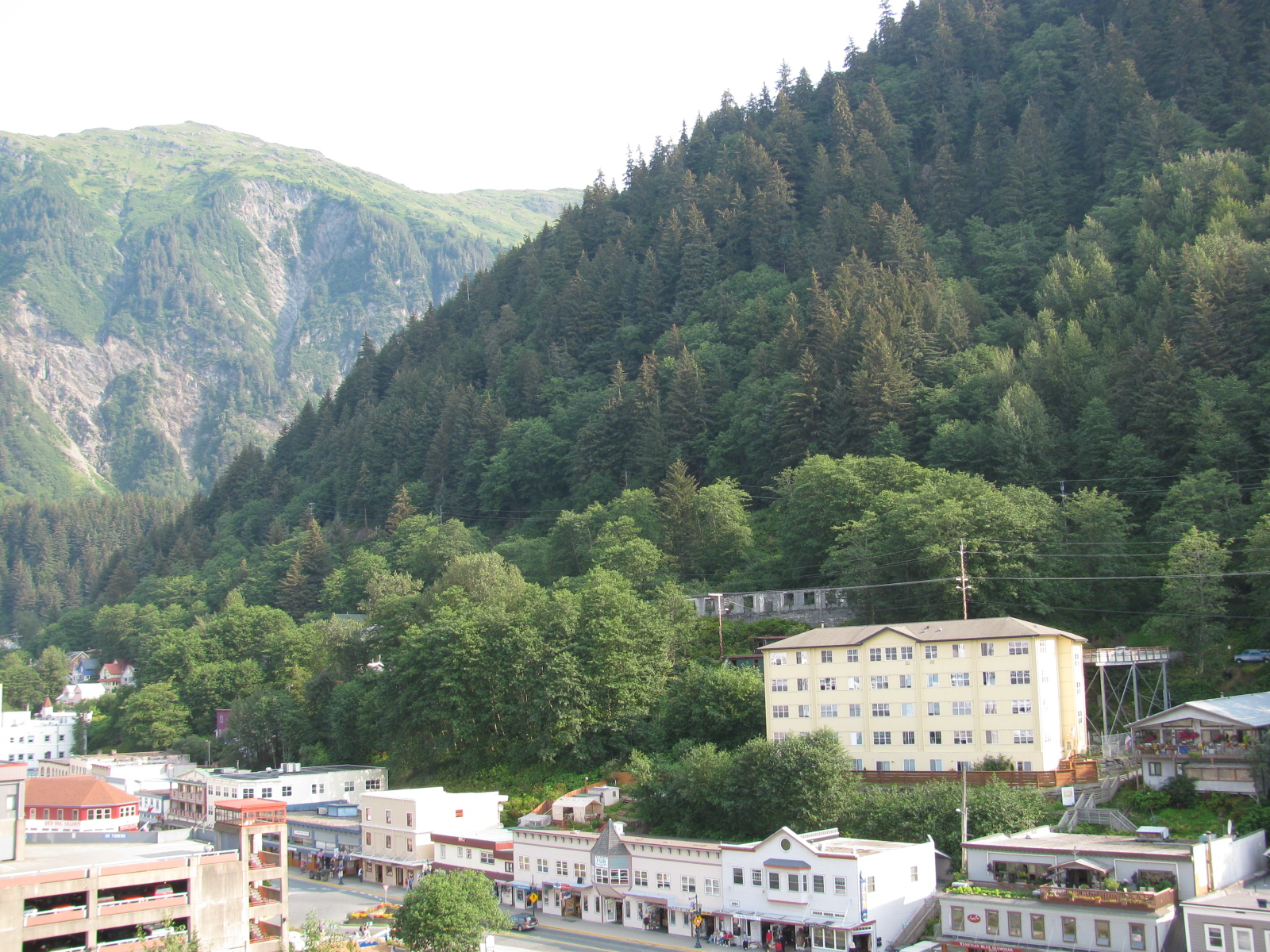 We docked in Juneau, Alaska. My first chance in two days to get off the ship! Here's my first glimpse of the town.