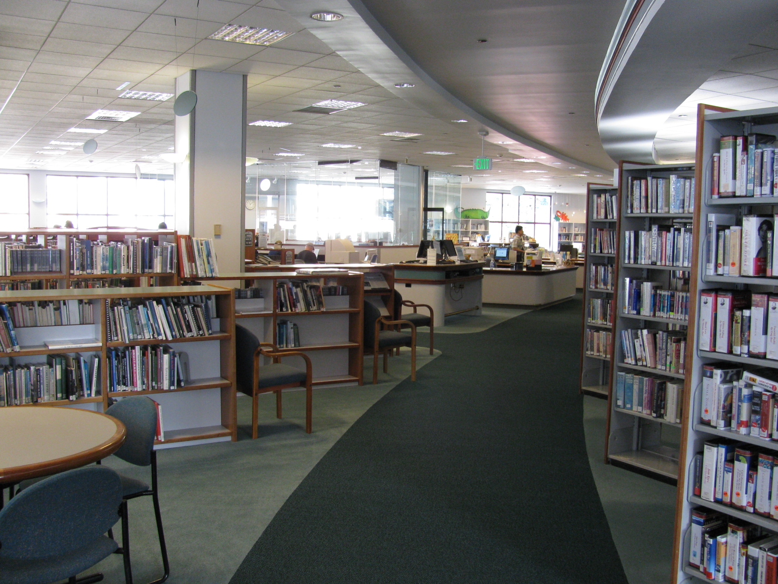 The library, which is on the top floor of the parking garage. Beyond it on the right, you can see the Red Dog Saloon,