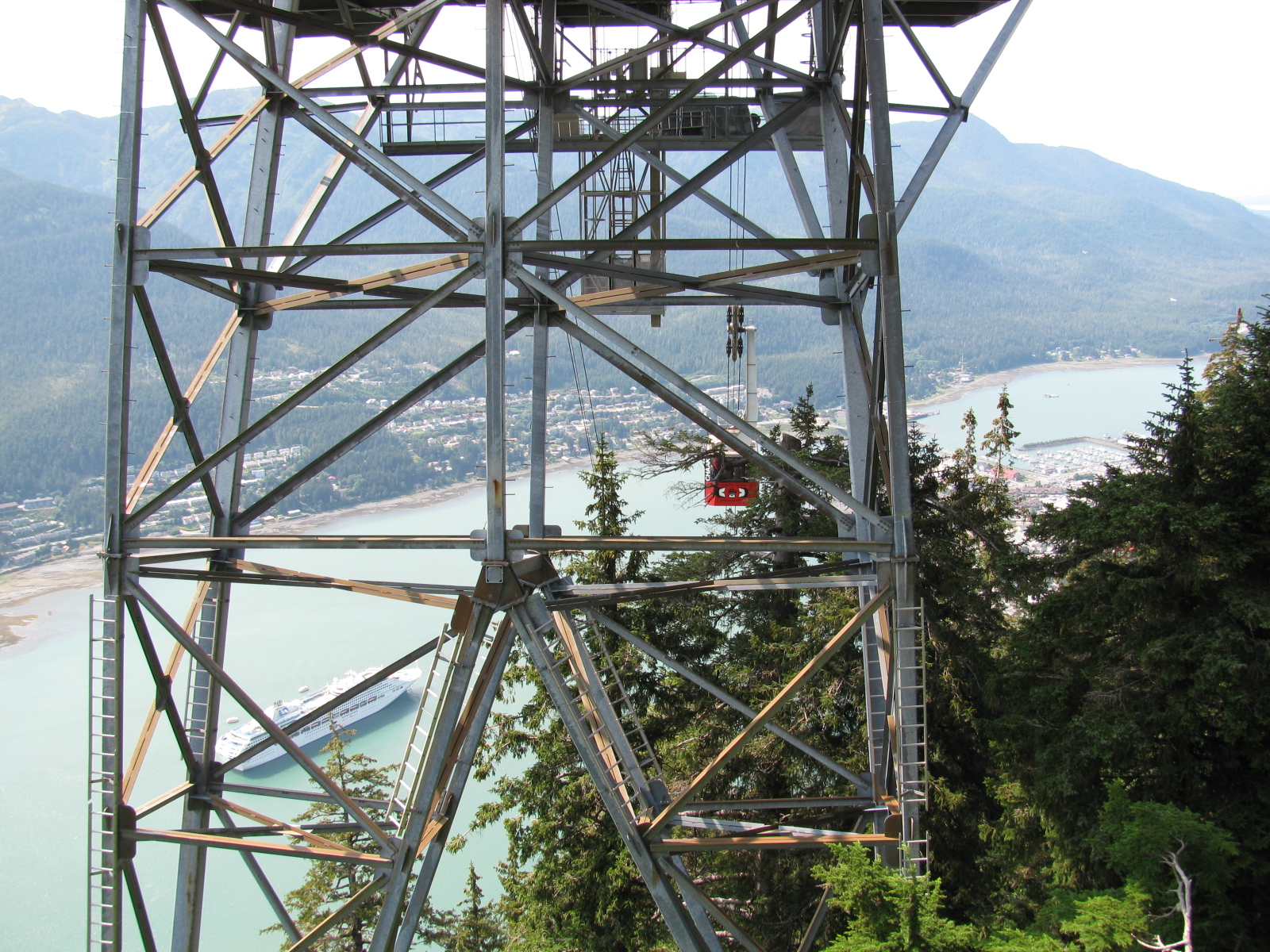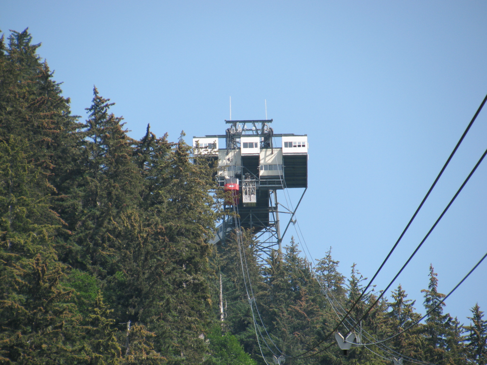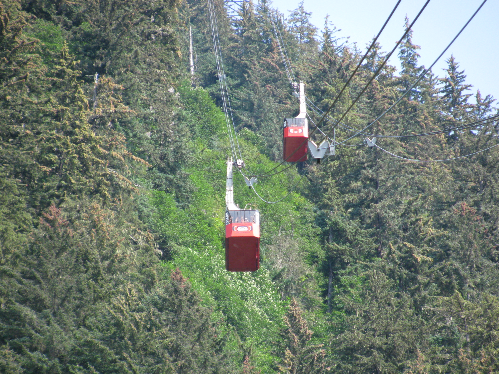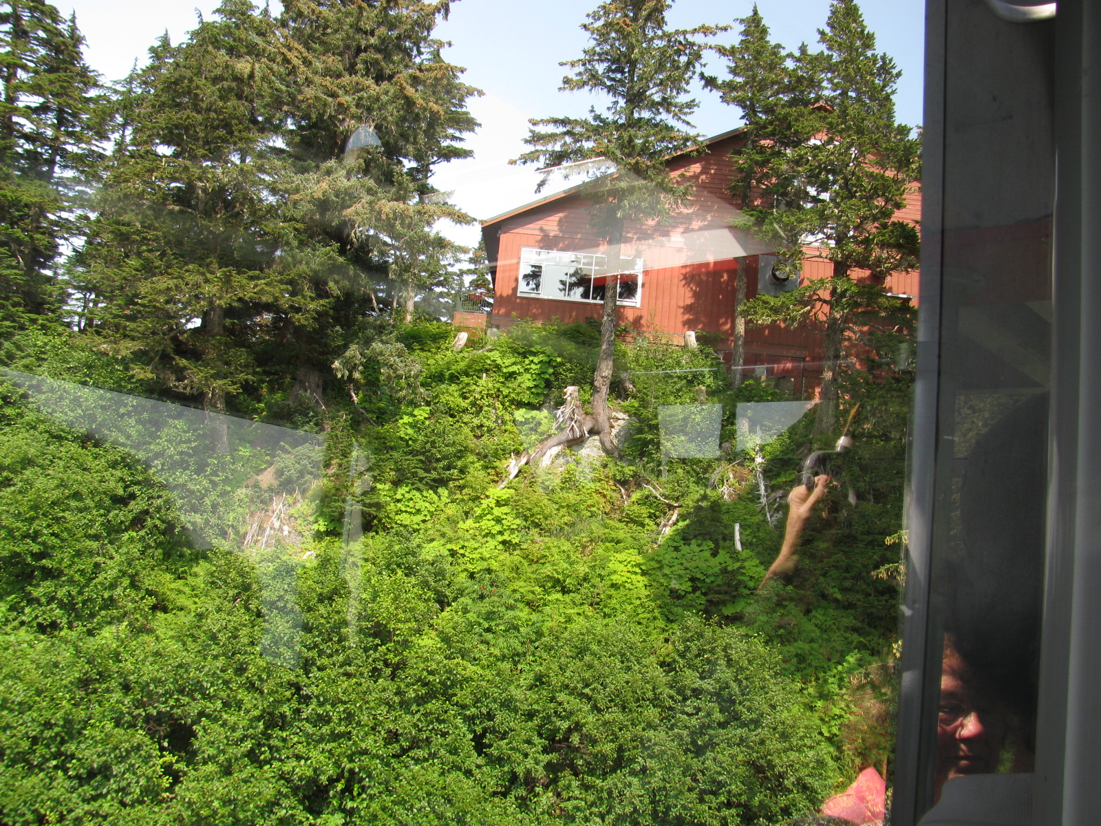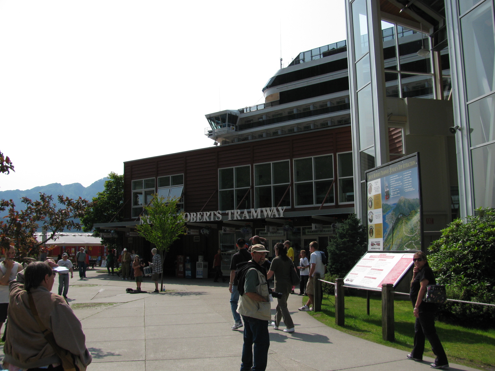 Mom didn't want to read any books or anything; just see the place again. As I wheeled her back to the ship, I noticed the Mt. Roberts Tramway. "They have a tramway?" I thought to myself. "I gotta go up it!" I had a ticket for a shore excursion, a floatplane ride over the glaciers, but that wasn't until 3 o'clock.