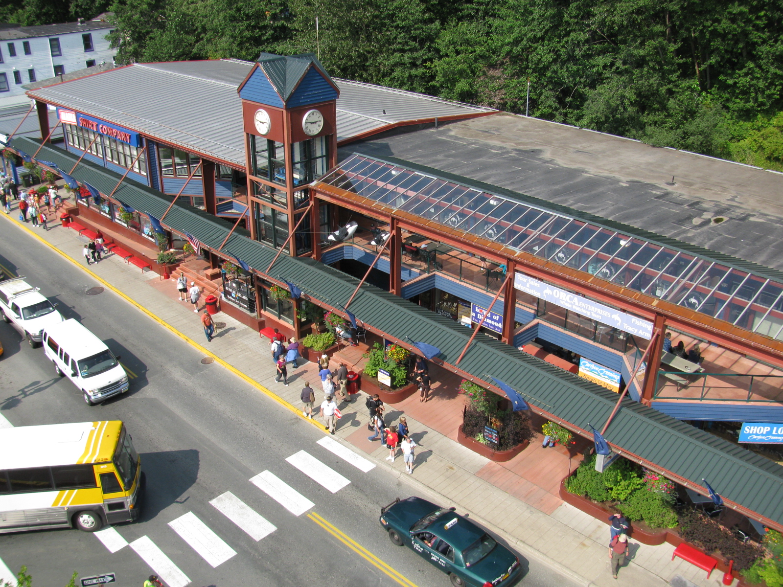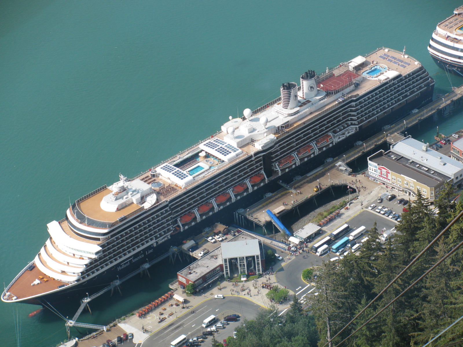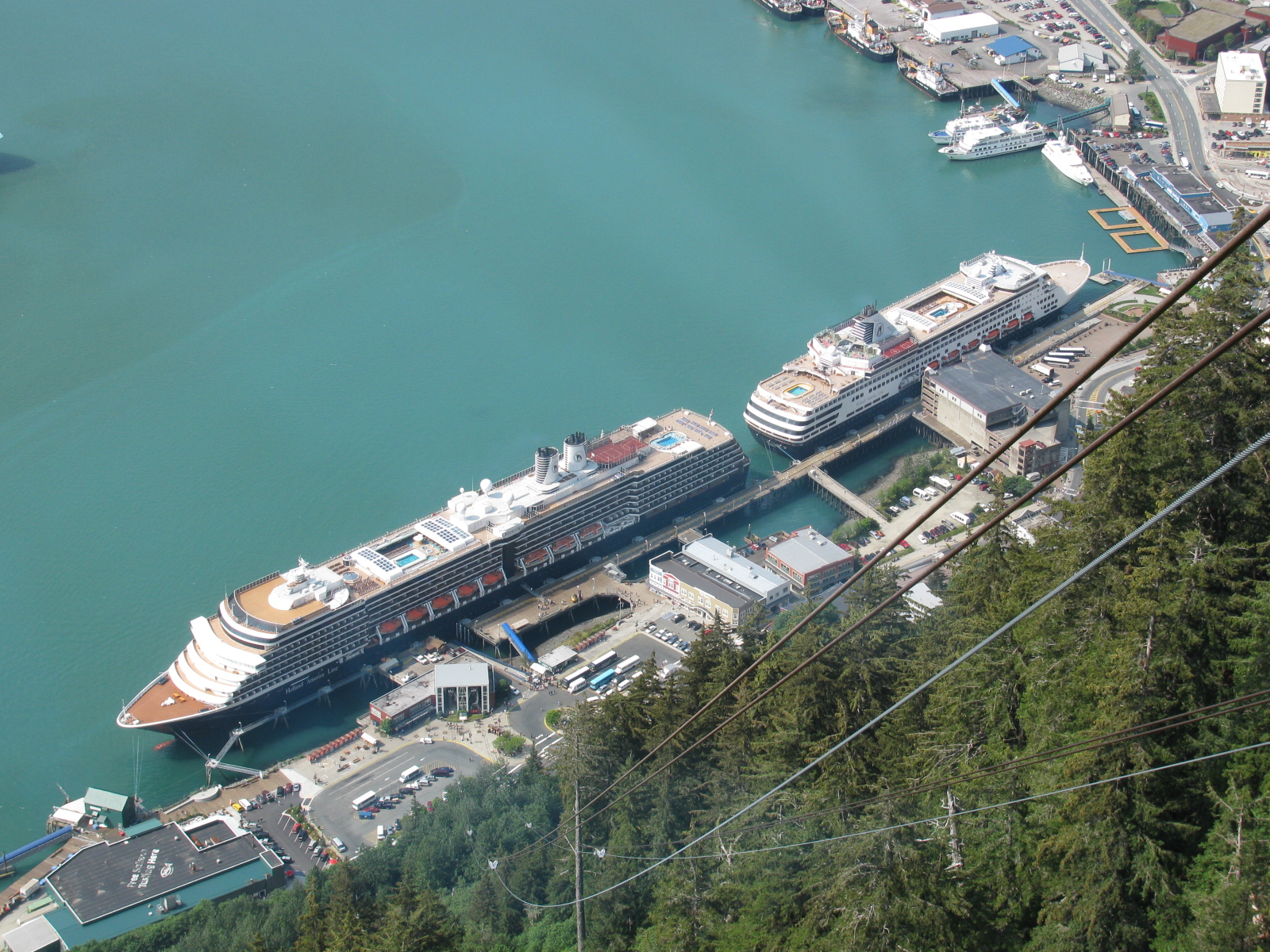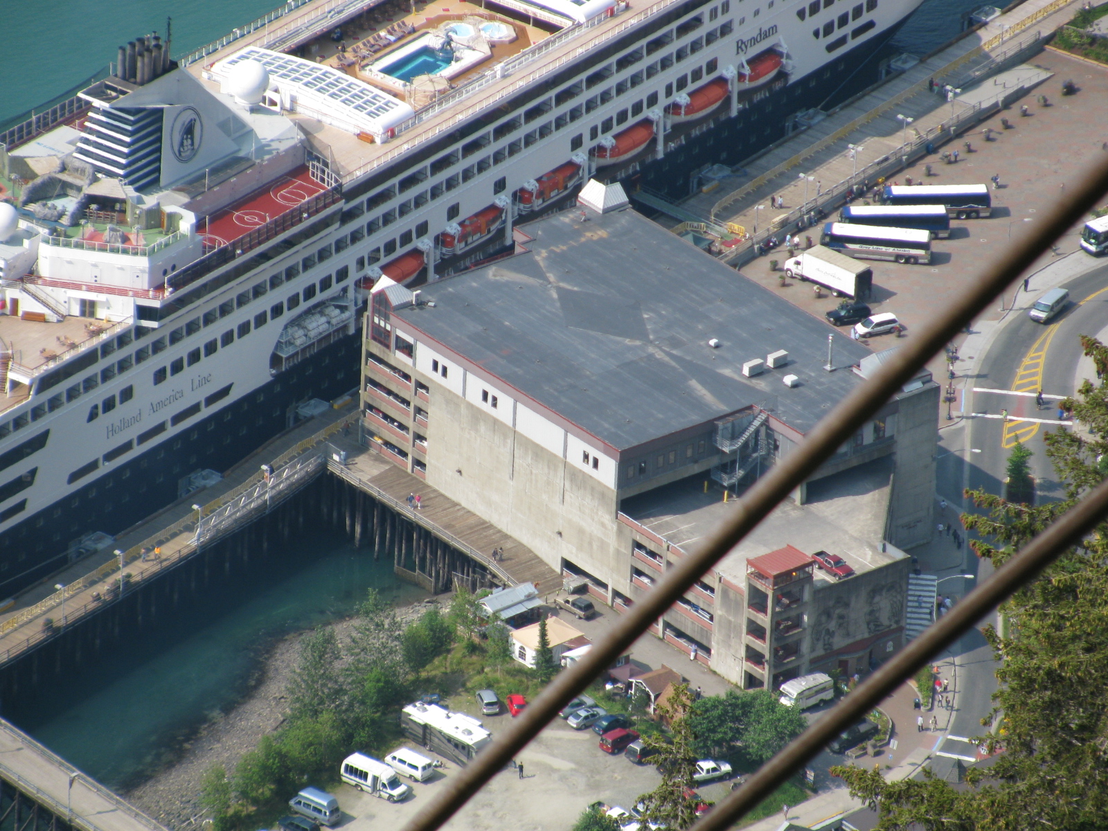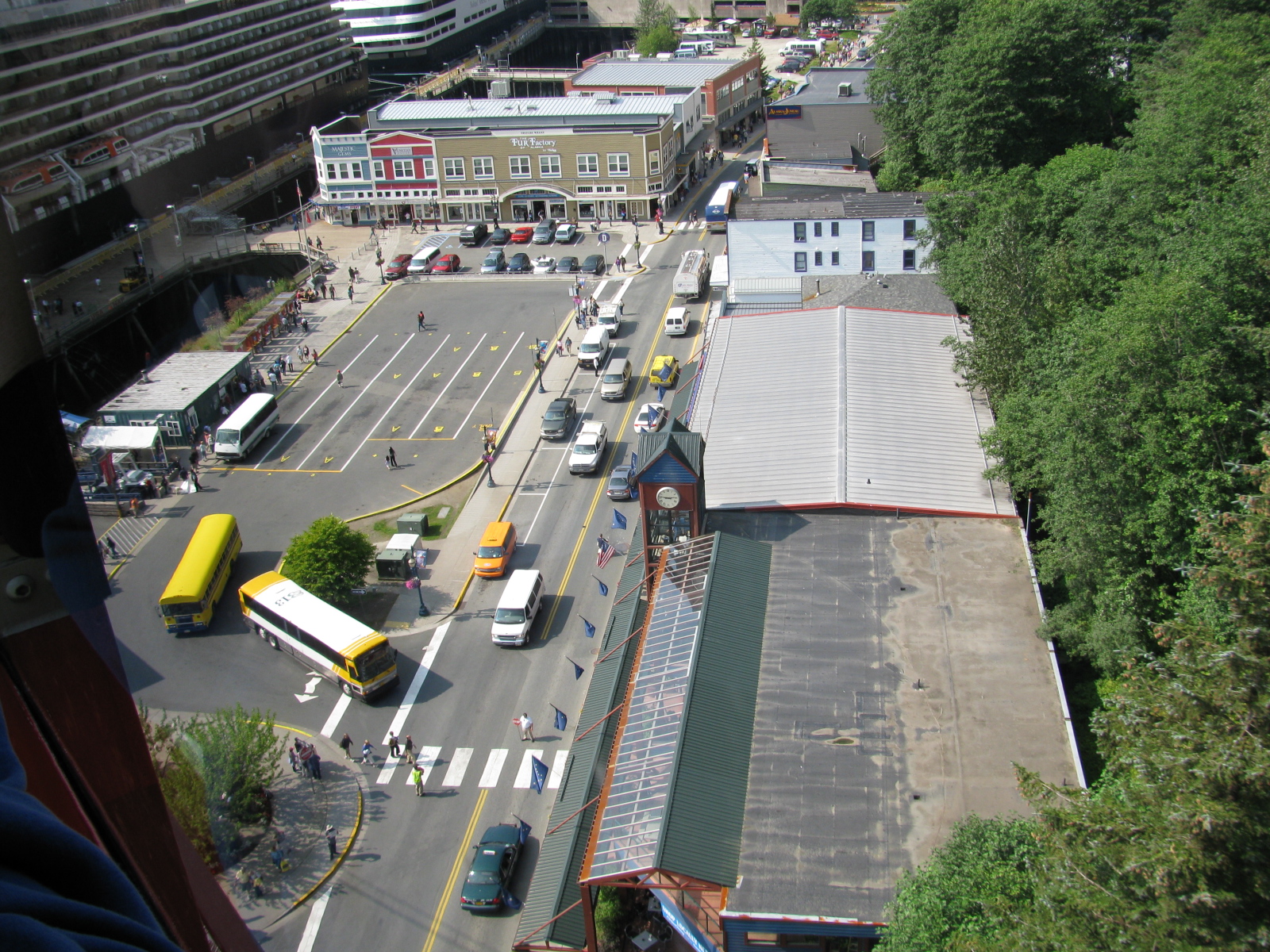 Mom didn't want to read any books or anything; just see the place again. As I wheeled her back to the ship, I noticed the Mt. Roberts Tramway. "They have a tramway?" I thought to myself. "I gotta go up it!" I had a ticket for a shore excursion, a floatplane ride over the glaciers, but that wasn't until 3 o'clock.
