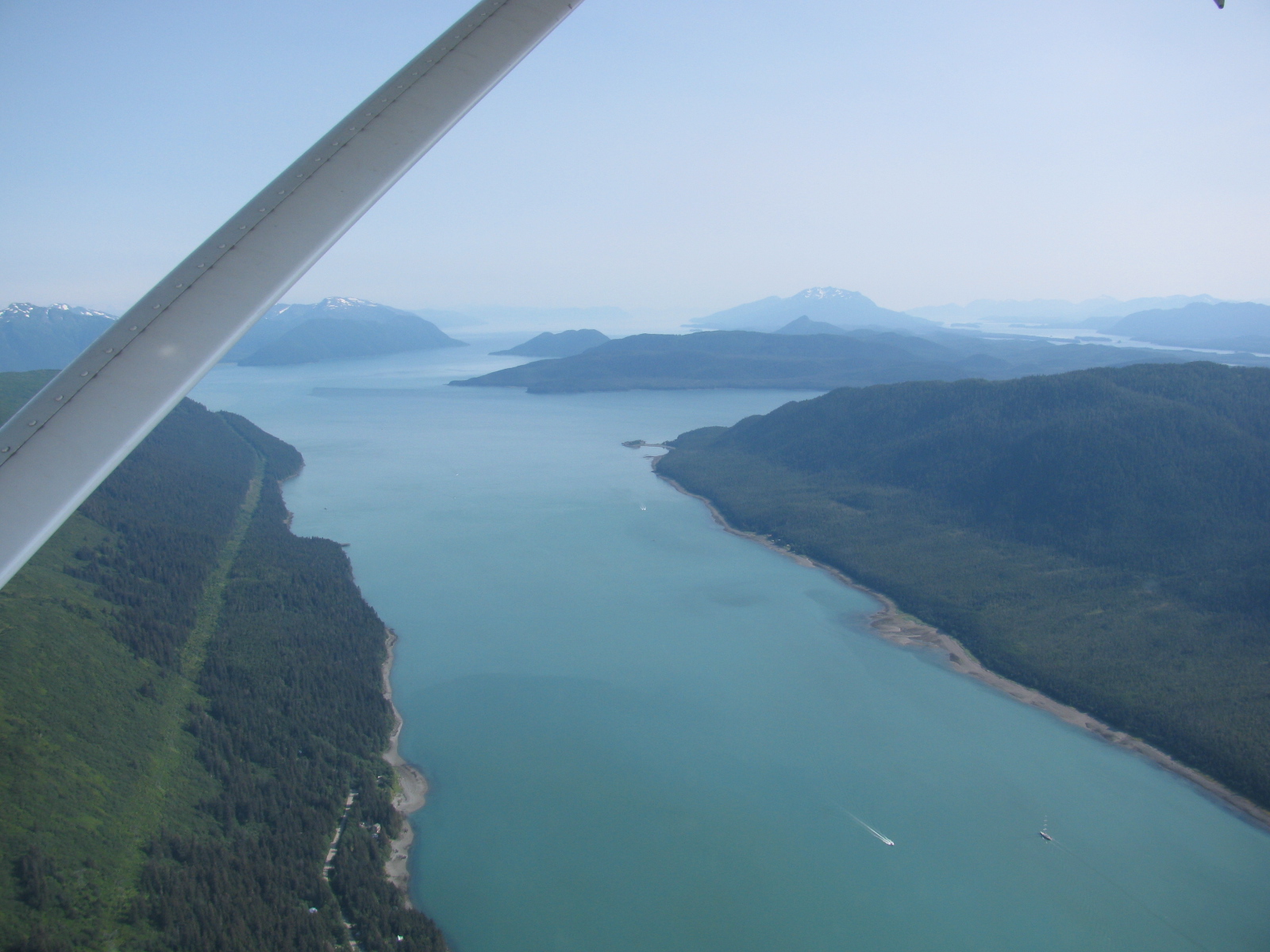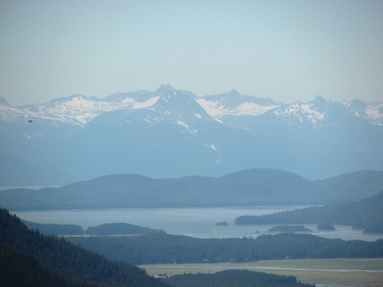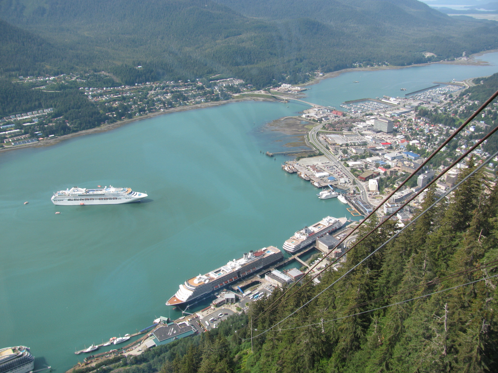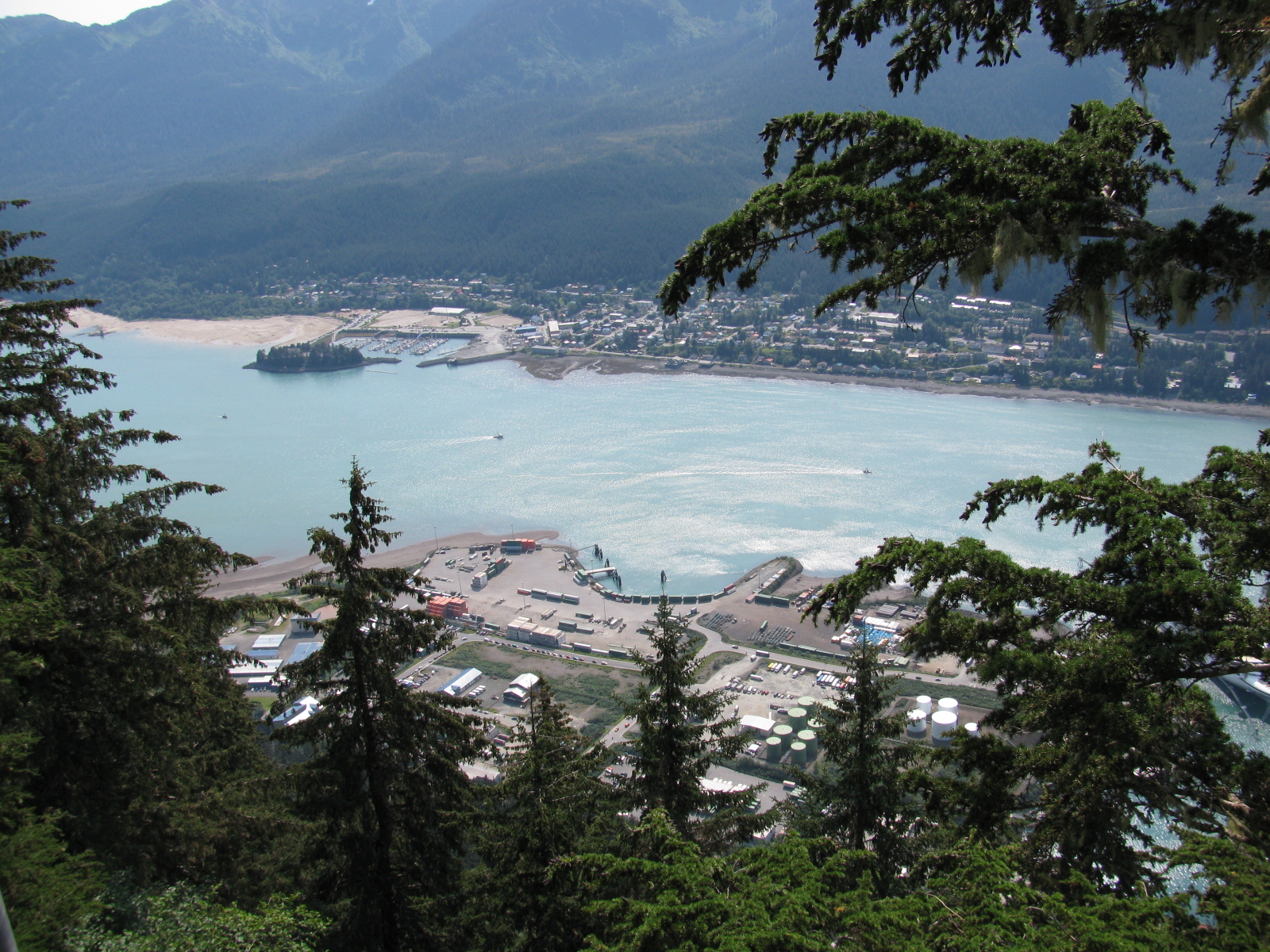 Looking down on Juneau and Gastineau Channel from the Mountain House at the top of the Tramway.