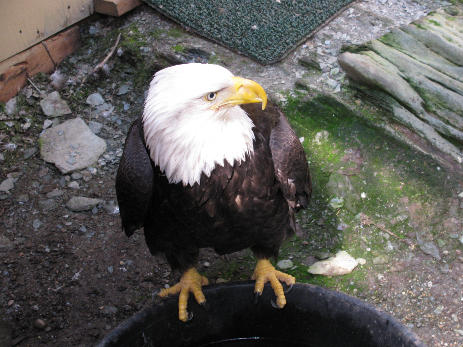 The Raptor Center has an injured eagle that they care for, named Lady Baltimore. She is blind in her left eye.