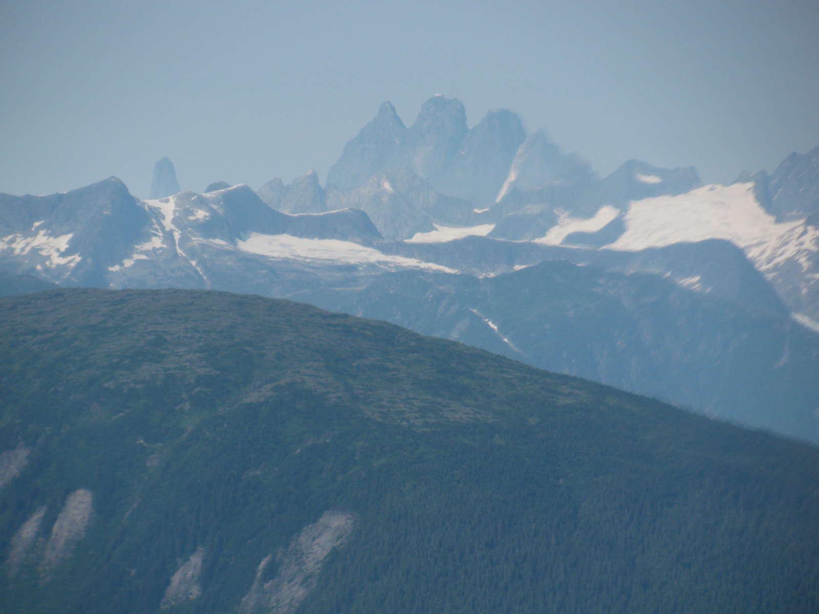 Distant mountains. At extreme left in the second picture, you can see a floatplane, like the one I'd be riding in later.