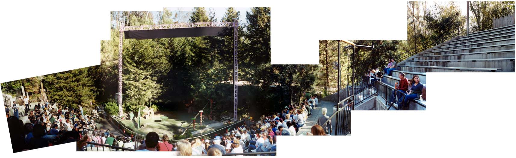 A composite view of the Hunte Amphitheater, in the San Diego Zoo. Notice that the top of the scaffold thingy over the stage is level with the top row of seats!